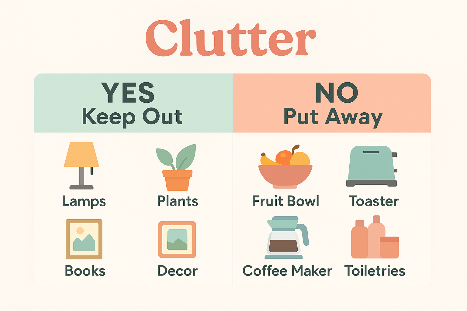Finally, your bedroom and bathroom. Again, these are probablyn’t your favorite spaces to deal with hosting, but be mindful of what you leave out, especially the personal stuff! All those toiletries can be put away, and so can those dirty clothes.